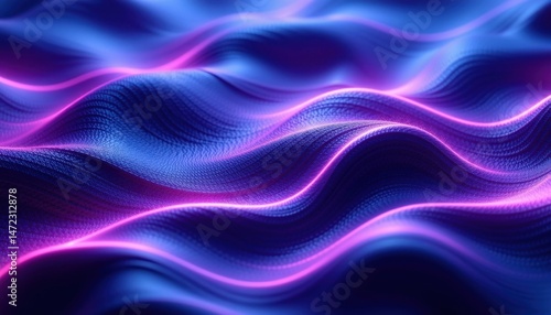 Electric blue to deep purple wavy texture with glowing edge embossing, modern and high tech mood, designed at 8K resolution for futuristic digital interfaces, no logos or icons