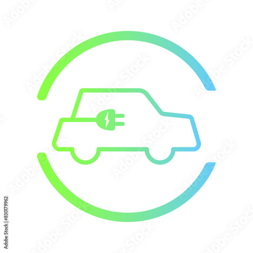 Electric car with green plug symbol. Green hybrid vehicles charging point logo.
