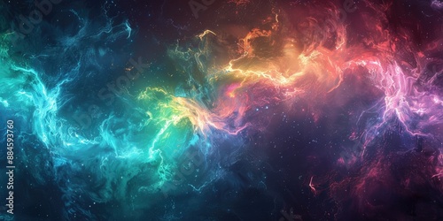 Electric colors and patterns forming a vibrant space-inspired visual.