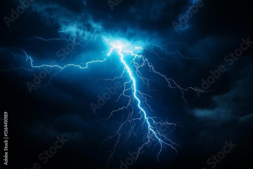 Electric Fury A Vibrant Lightning Bolt Strikes Through Dark Storm Clouds, power, nature