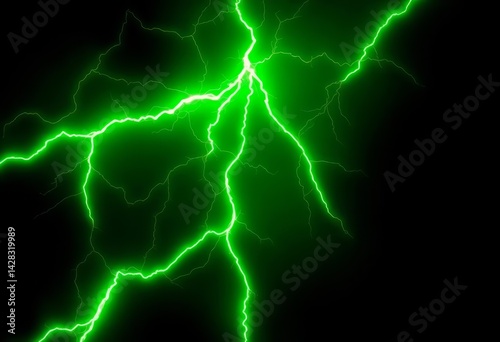 Electric green lightning bolts streak across a dark, solid background, texture, radiant