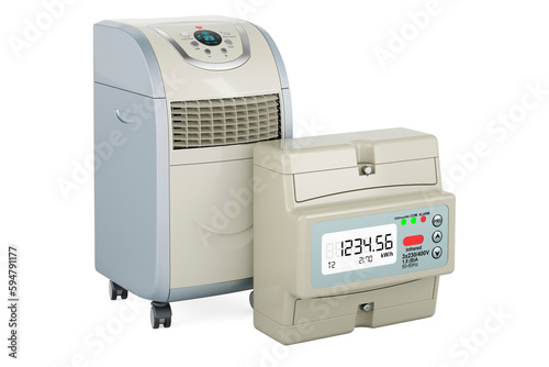 Electric meter with portable air conditioner, 3D rendering