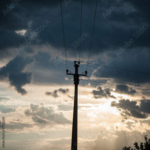 Electric pylonon the background of the evening sky.