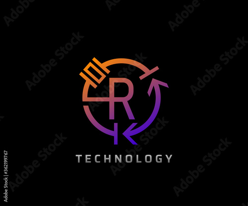 Electric R Letter Icon Design With Circle Shape and Electrical Engineering Component Symbol.