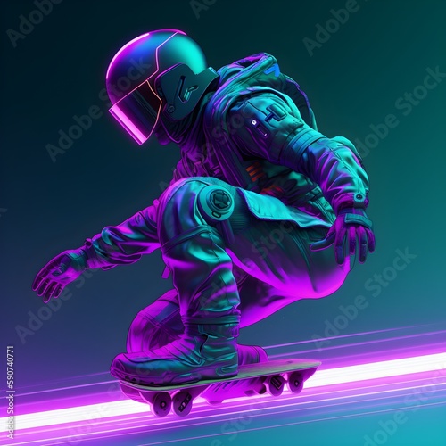 "Electric Ride: A Neon Biker's Thrilling Adventure in the Metaverse" / Generative AI Artwork