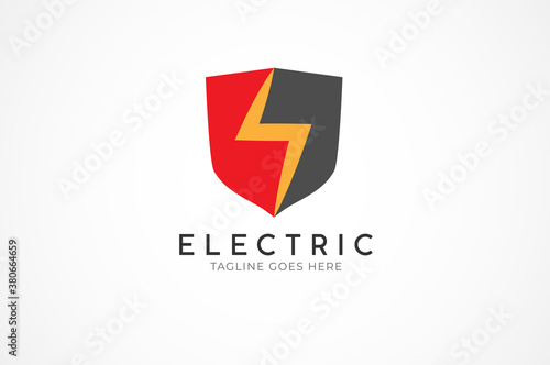 Electric Shield logo, Flat Logo Design Template, vector illustration