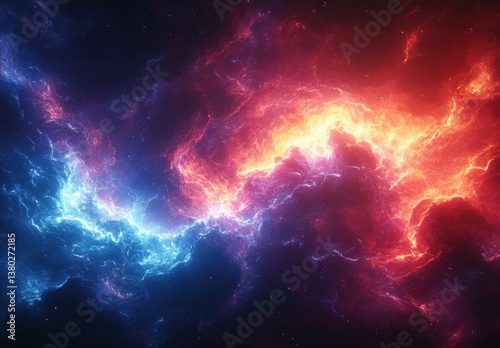 Electric Storm Fractal Background of Red and Blue Lightning Bolts