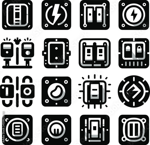 electric switch icon bundle icon silhouette line art stock photos premium quality