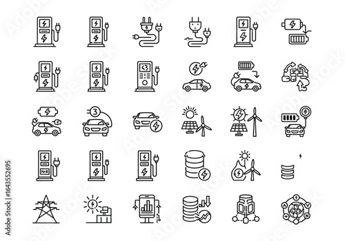 Electric Vehicle Charging Stations Icons and Illustrations