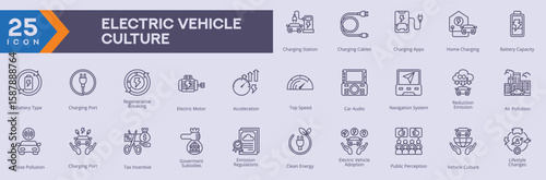 Electric Vehicle Cilture collection vector images in outline style.
