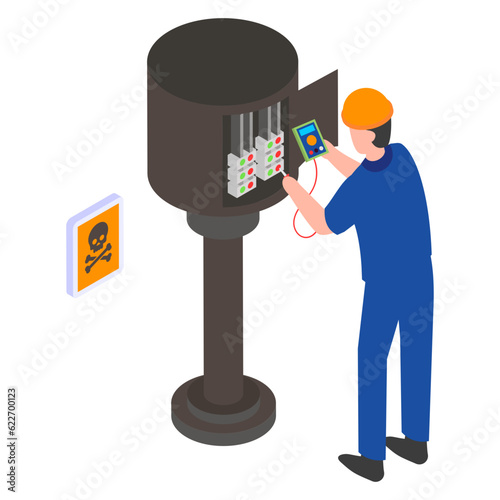 Electrical Power Systems and High Voltage Engineering isometric Concept vector icon design, Electrical engineer symbol, Wiring specialist Sign, maintenance technician tools stock illustration