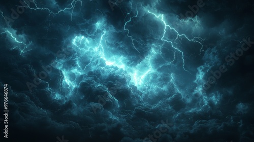 Electrical storm atmosphere, with lightning bolts illuminating the darkened clouds, the environment charged with energy