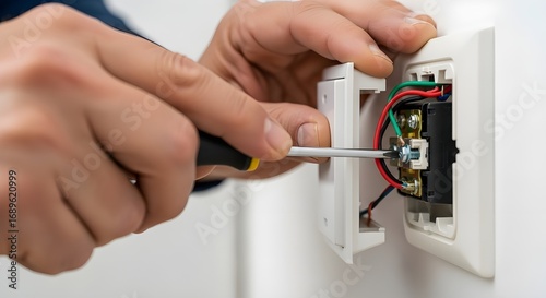 Electrician installing electrical outlet, home renovation, DIY project, wiring job