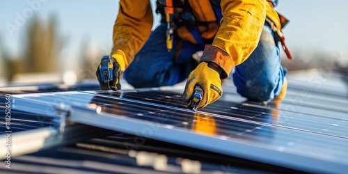 electrician installing solar panel on roof