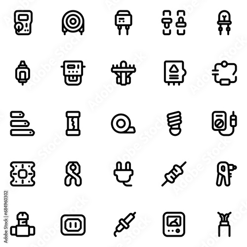 electrician tools line icon sheet