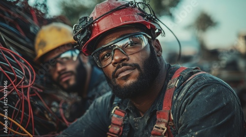 Electricians at a technical school are working to install sufficient wiring, guaranteeing the building will have enough electricity for its technological systems