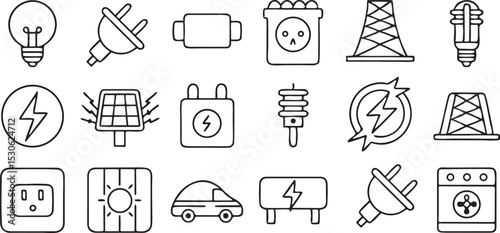 Electricity Power Icons Solid Black Set Plug Lightning Energy Charger Electric