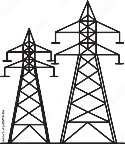 Electricity tower line art, black outline, vector and illustration, coloring book page line art drawing