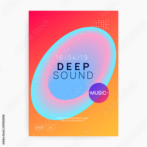 Electronic Fest. Techno And Show Design. Cool Art For Presentation. Linear House Poster. Gradient Pattern For Set Layout. Pink And Blue Electronic Fest