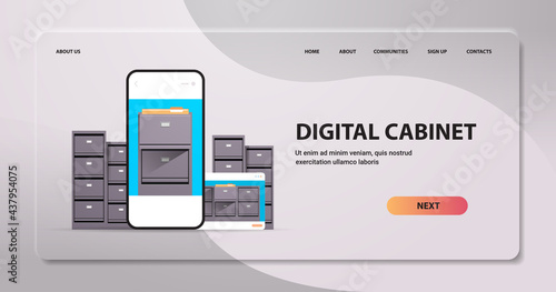 electronic file archives digital cabinet on smartphone screen organization service concept horizontal