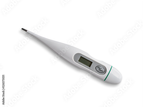 Electronic thermometer isolated on transparent background. Fever diagnostic and healthcare concept.