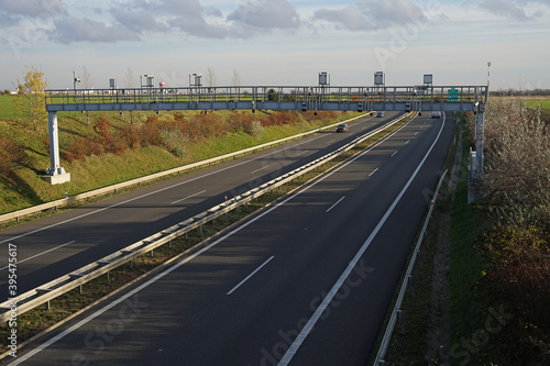 Electronic toll collection system on motorway in Czech Republic, gate with license plate cameras, vehicle detector and antennas