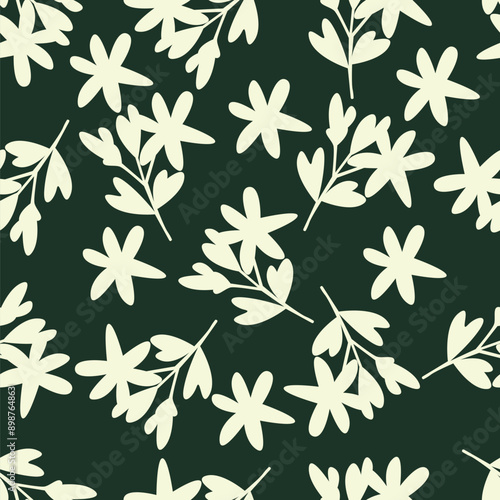 Elegance pink floral stems seamless pattern on a grey background. Vector hand drawn. Artistic, abstract flowers and tiny leaves, buds bells printing. Template for designs, fabric, fashion, textile