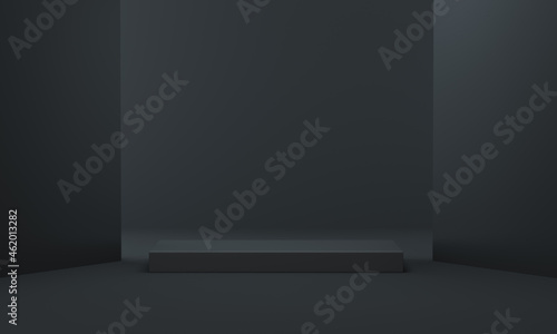 Elegance stage podium platform on black modern living room illuminated. Luxury Concept for product display.