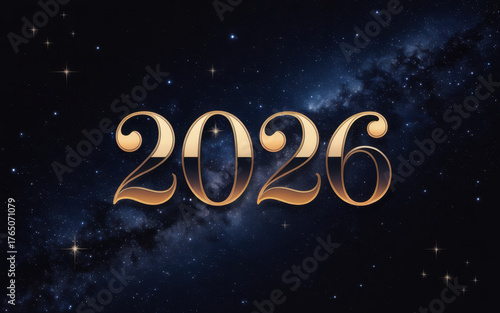 Elegant 2026 new year design golden numbers with starry space background perfect for greeting cards and festive promotions