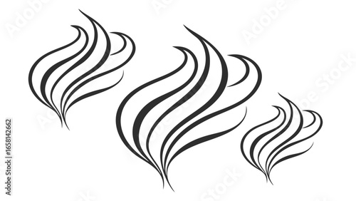 Elegant abstract black flowing lines forming decorative swirls and curves on a white background