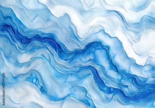 Elegant Abstract Fluid Art in Shades of Blue and White with Swirling Patterns and Gradients Perfect for Modern Decor and Design Projects