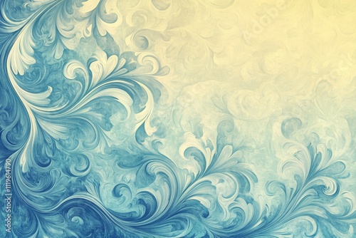 Elegant Abstract Swirling Pattern in Blue and Yellow with Intricate Flourishes and Soft Textures Creating a Serene and Calm Atmosphere for Backgrounds