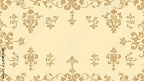 Elegant and intricate Seamless Damask wallpaper design with floral motifs and scrolling patterns in shades of gold and white, intricate, decorative