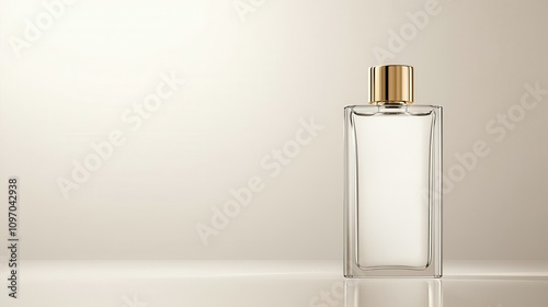 Elegant and Minimalist Glass Perfume Bottle with Gold Cap on Soft Beige Background, Ideal for Beauty and Fragrance Product Visuals and Advertising Campaigns