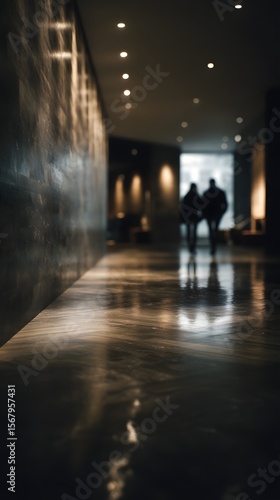 Elegant and minimalist modern condo lobby with soft lighting