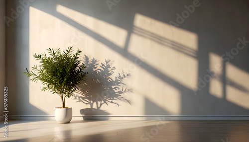 Elegant and minimalist scene featuring the play of light and reflections on a wall background.