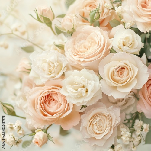 Elegant Arrangement of Soft Pink and White Roses with Greenery