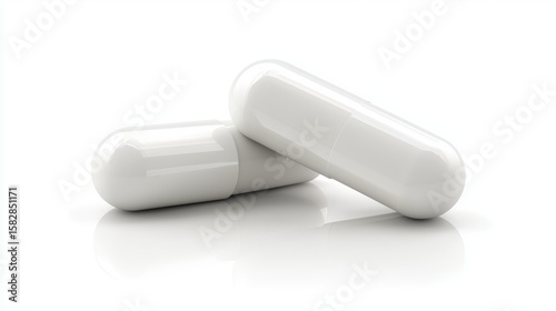 Elegant Arrangement of Two Overlapping White Pharmaceutical Capsules Displaying Smooth Glossy Finish