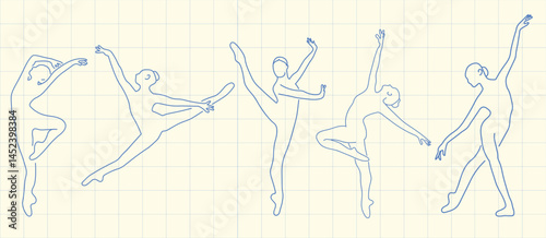 Elegant Ballerina Sketches in Motion, A Study of Grace and Balance on Grid