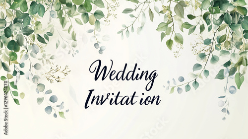 Elegant barn wedding invitation with botanical greenery and graceful font and copy space