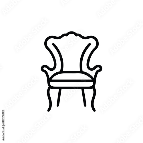 Elegant Baroque Armchair Line Art Illustration Classic Furniture Design Element