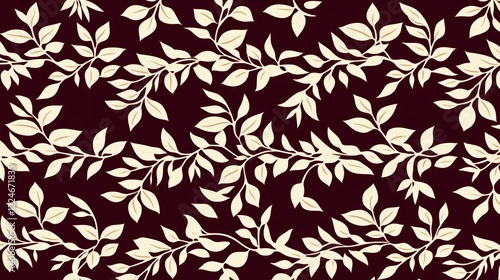 Elegant Beige Leaves on Dark Burgundy Background Seamless Pattern
