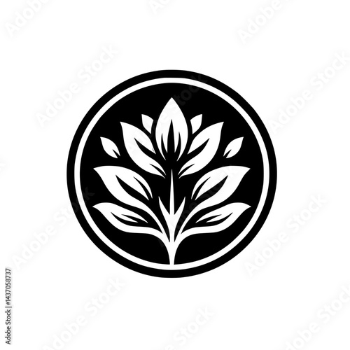 Elegant Black & White Floral Emblem within Circle, Logo Design