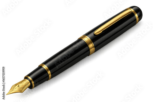 Elegant black and gold fountain pen isolated on transparent background, luxurious and classic.
