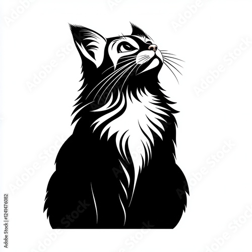 Elegant Black and White Cat Illustration Artistic Pet Design Graphic Fluffy Fur Animal Portrait