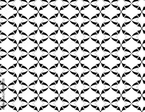 Elegant Black and White Decorative Seamless Pattern Featuring Intertwined Curved Petals and Central Diamond Shapes
