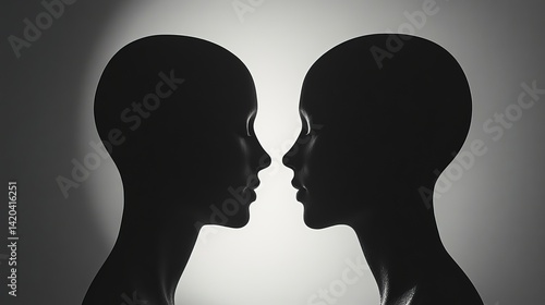 Elegant Black and White Female Silhouettes Facing Each Other Minimalist Portrait Studio Shot Artistic Conceptual Headshots Modern Stylish Mysterious