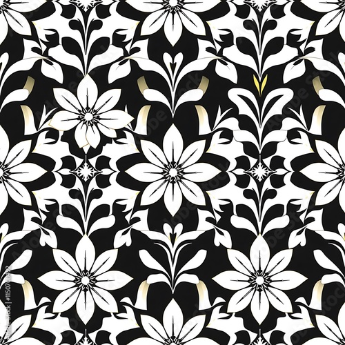 Elegant Black and White Floral Damask Pattern
