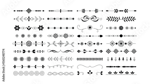 Elegant Black and White Floral Dividers and Borders Set for Graphic Design