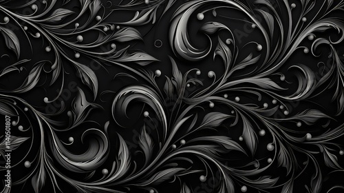 Elegant Black and White Floral Swirls, Dark Art Nouveau Design